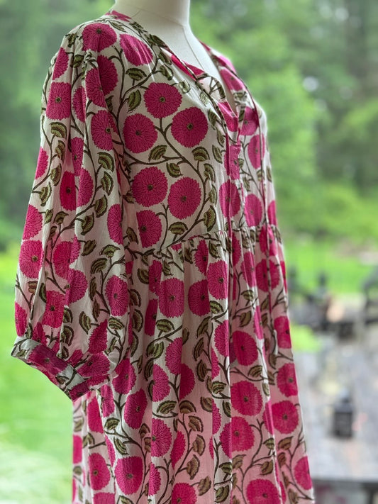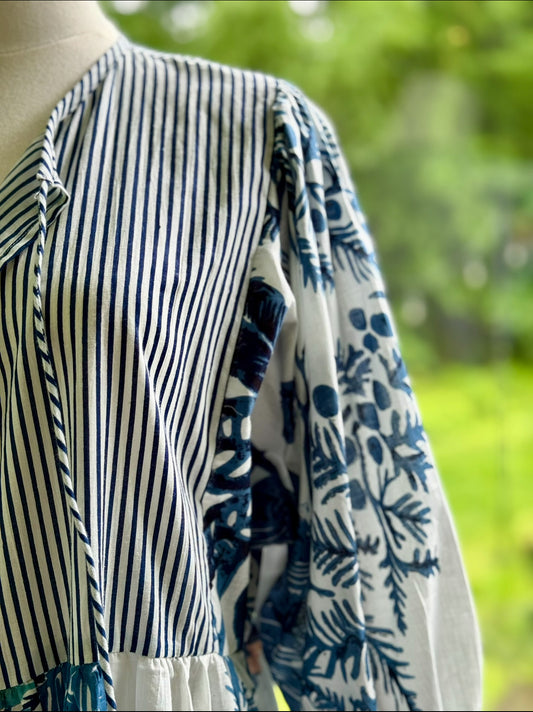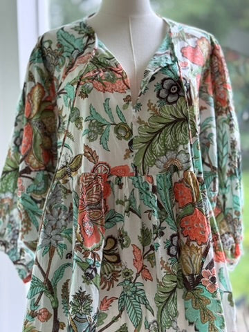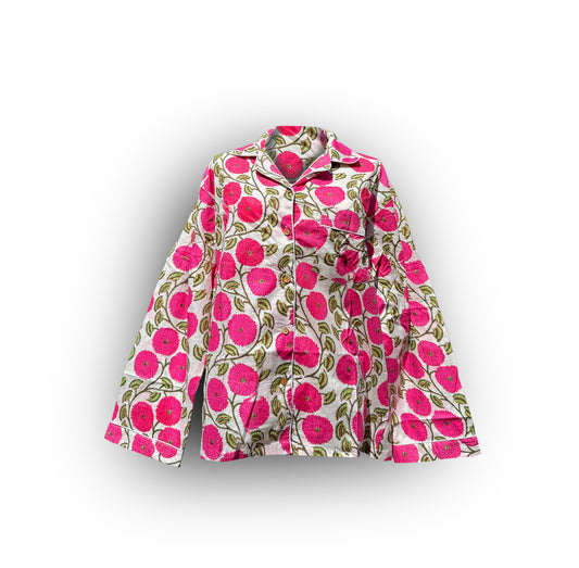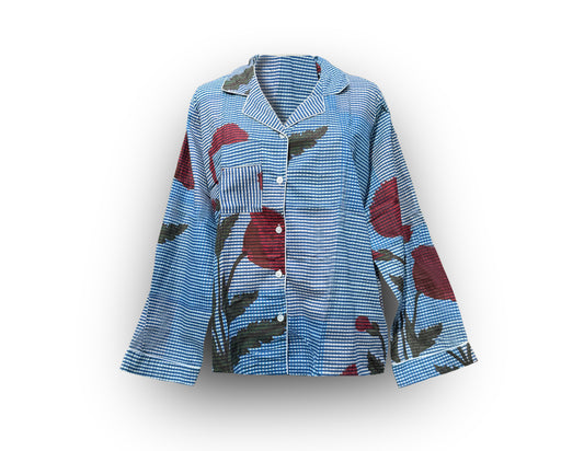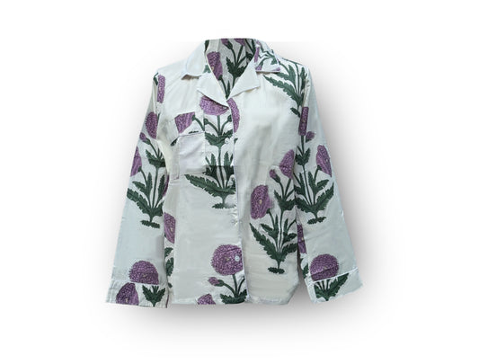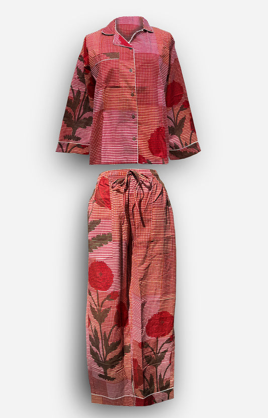 Women's Block Print Pajama Set | Turquoise Dahlia
