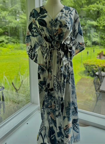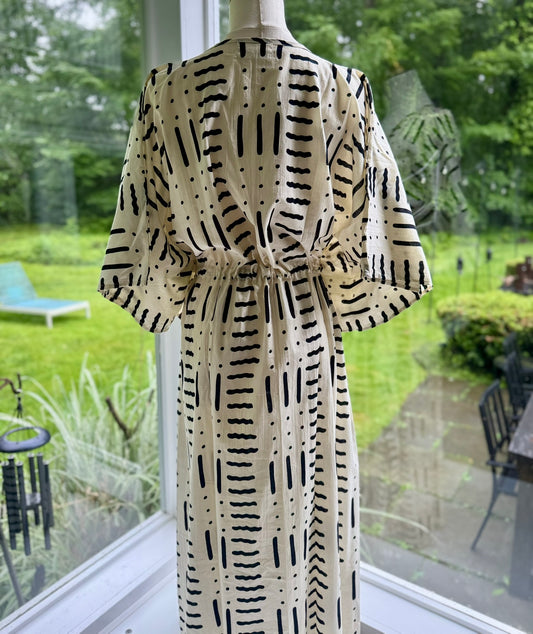 Hand Block Print Cotton Kaftan | Midnight Brush (Cream)