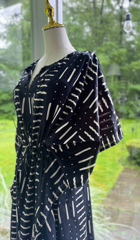 Hand Block Print Cotton Kaftan | Midnight Brush (Black)