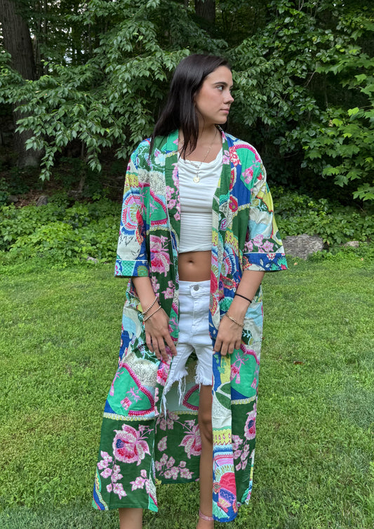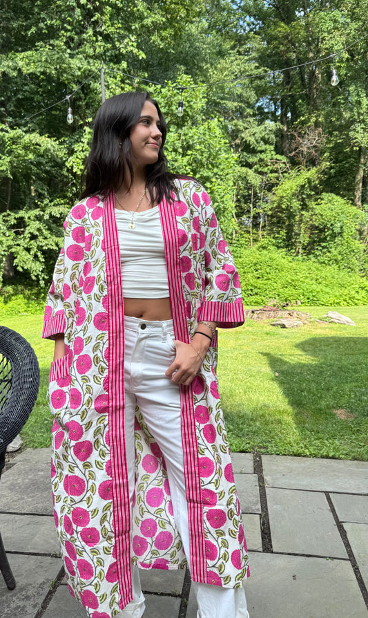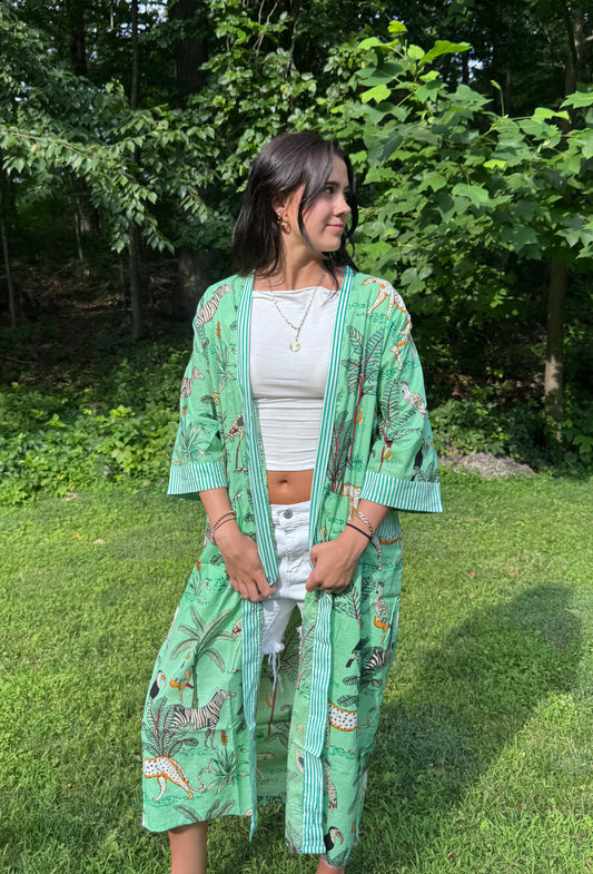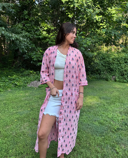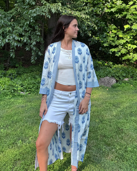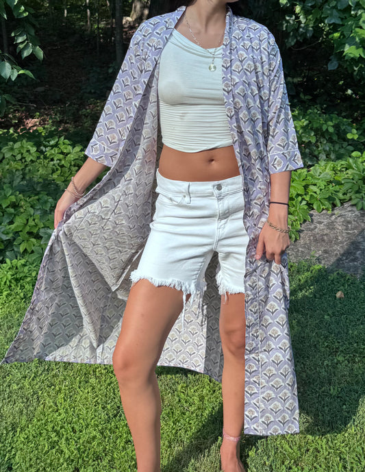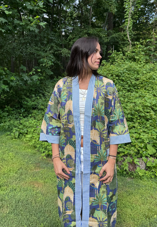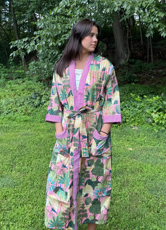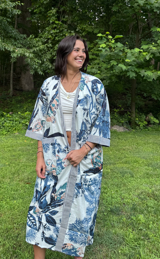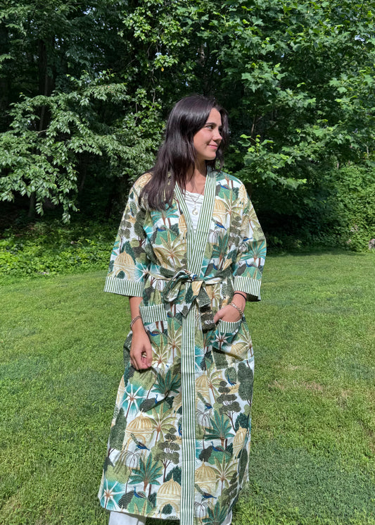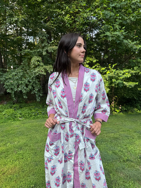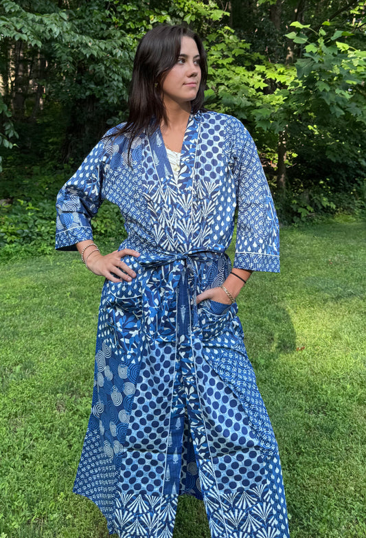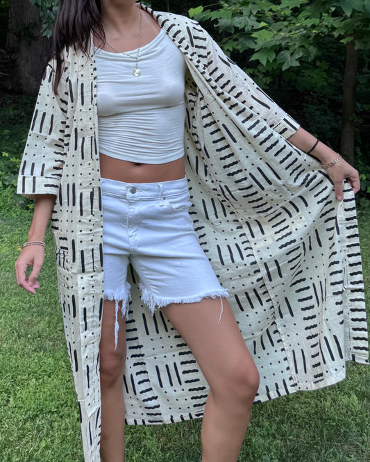 Hand-Block Print Robe | Midnight Brush (Cream)