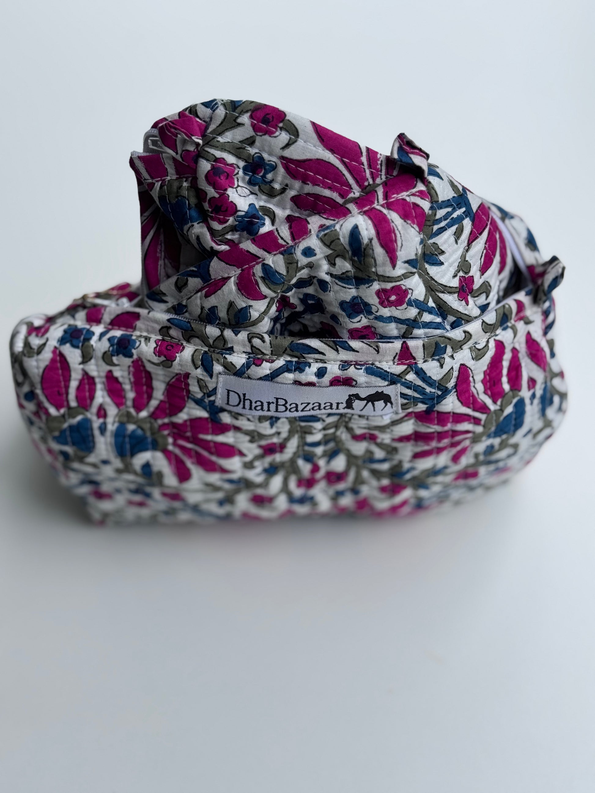 Introducing the ultimate solution for your hygiene and beauty travel needs: our Hand-Block Print Toiletry & Cosmetic Pouches!