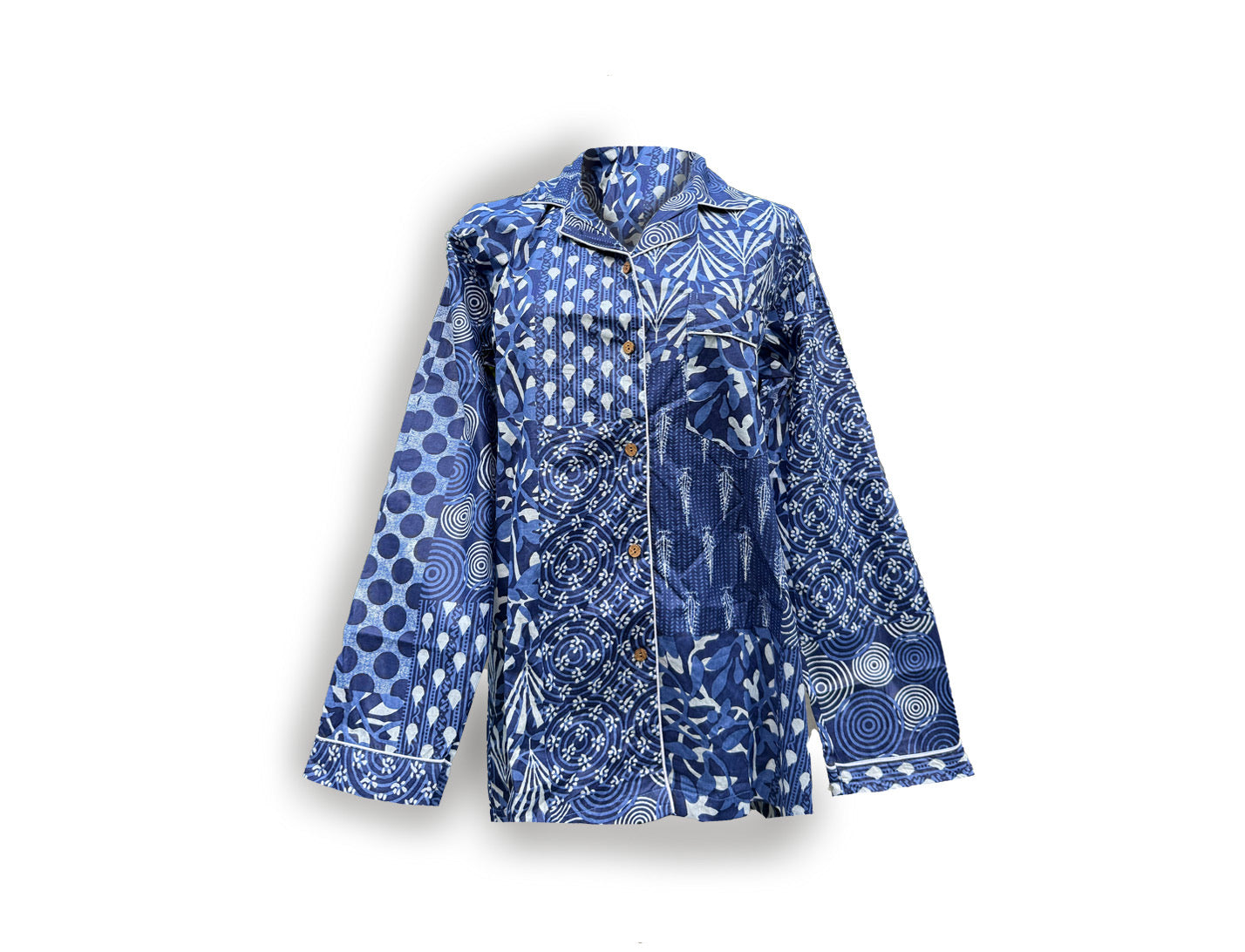 Indulge in comfort and style with our "Block Print Women's Pajama Set." This exquisite set features a long-sleeve button-down top and matching pants, two front pockets, complete with a convenient drawstring waist for an adjustable fit. Crafted from soft, breathable cotton, the intricate block print design adds a touch of elegance, making it perfect for lounging at home or a cozy night's sleep!