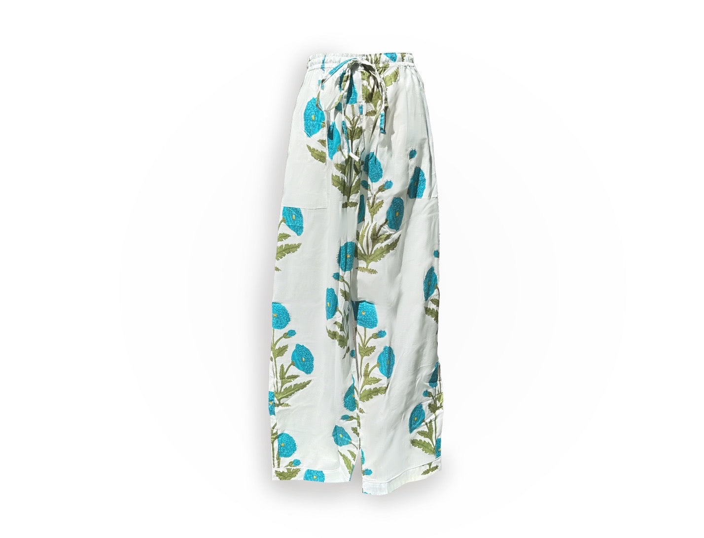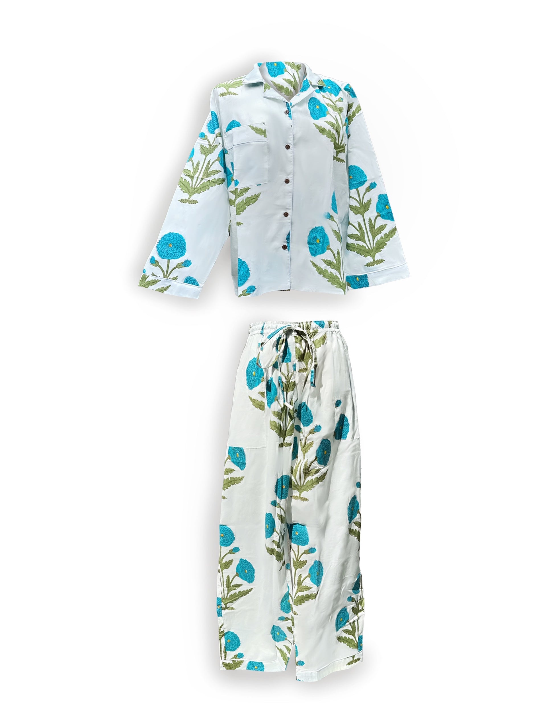 Women's Block Print Pajama Set | Turquoise Dahlia